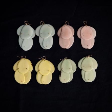Big Petal Tagua Earrings(aqua/pink/yellow/green)